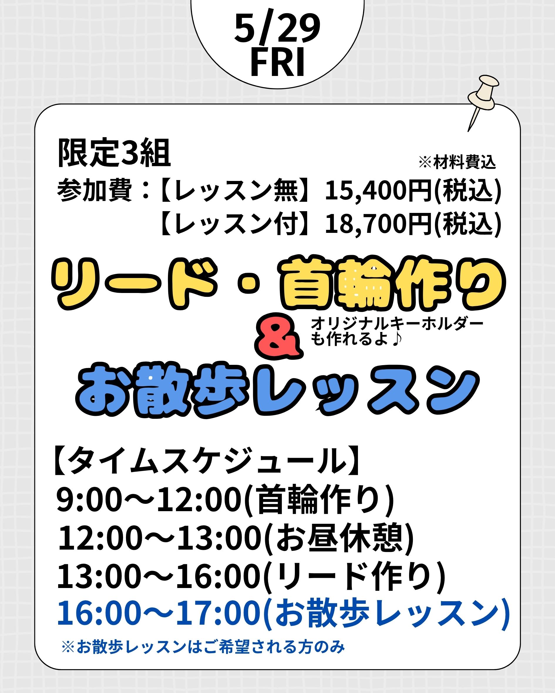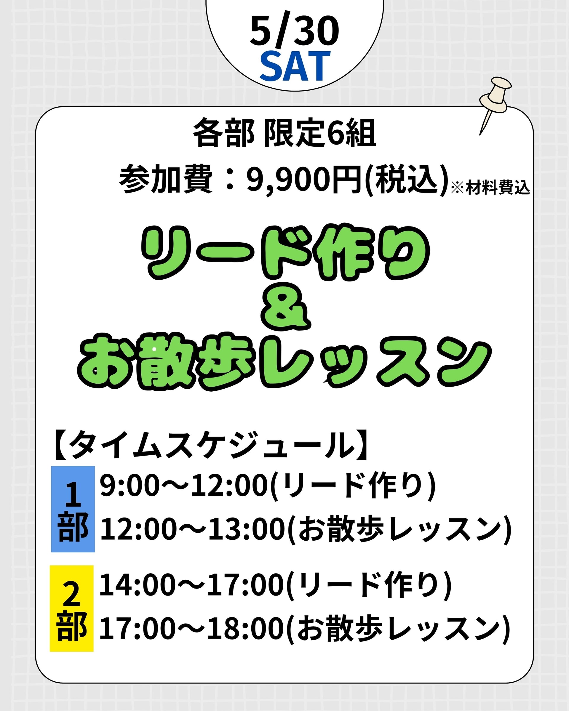 今回はリード作りをした後にお散歩レッスン付きのワークショップもあります🎵
